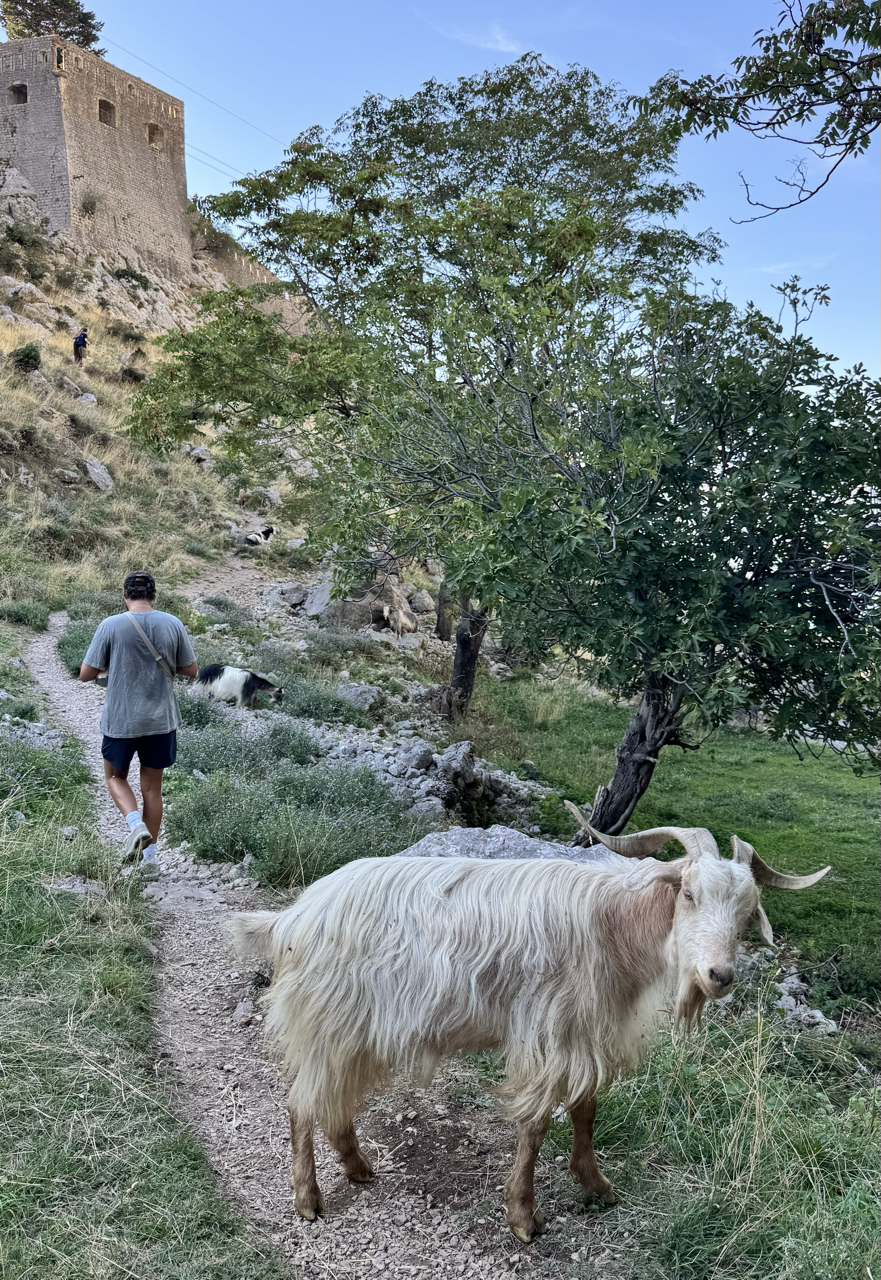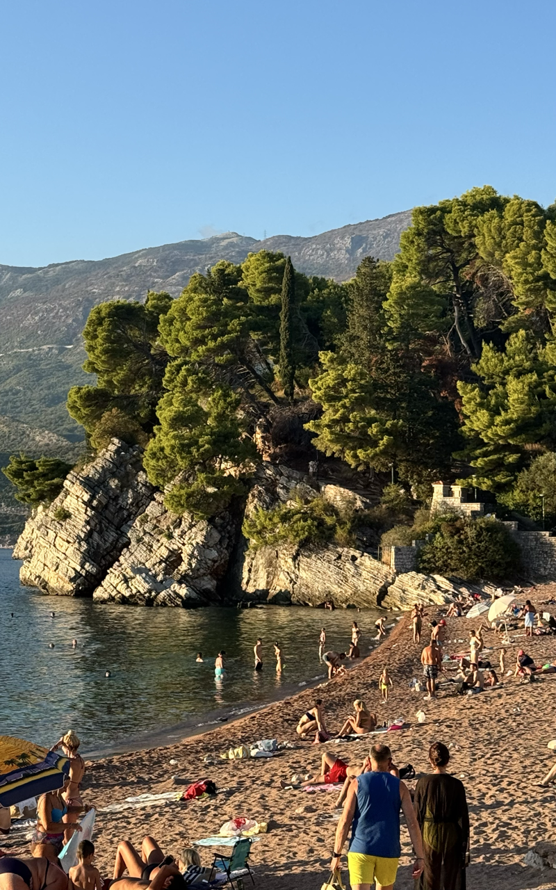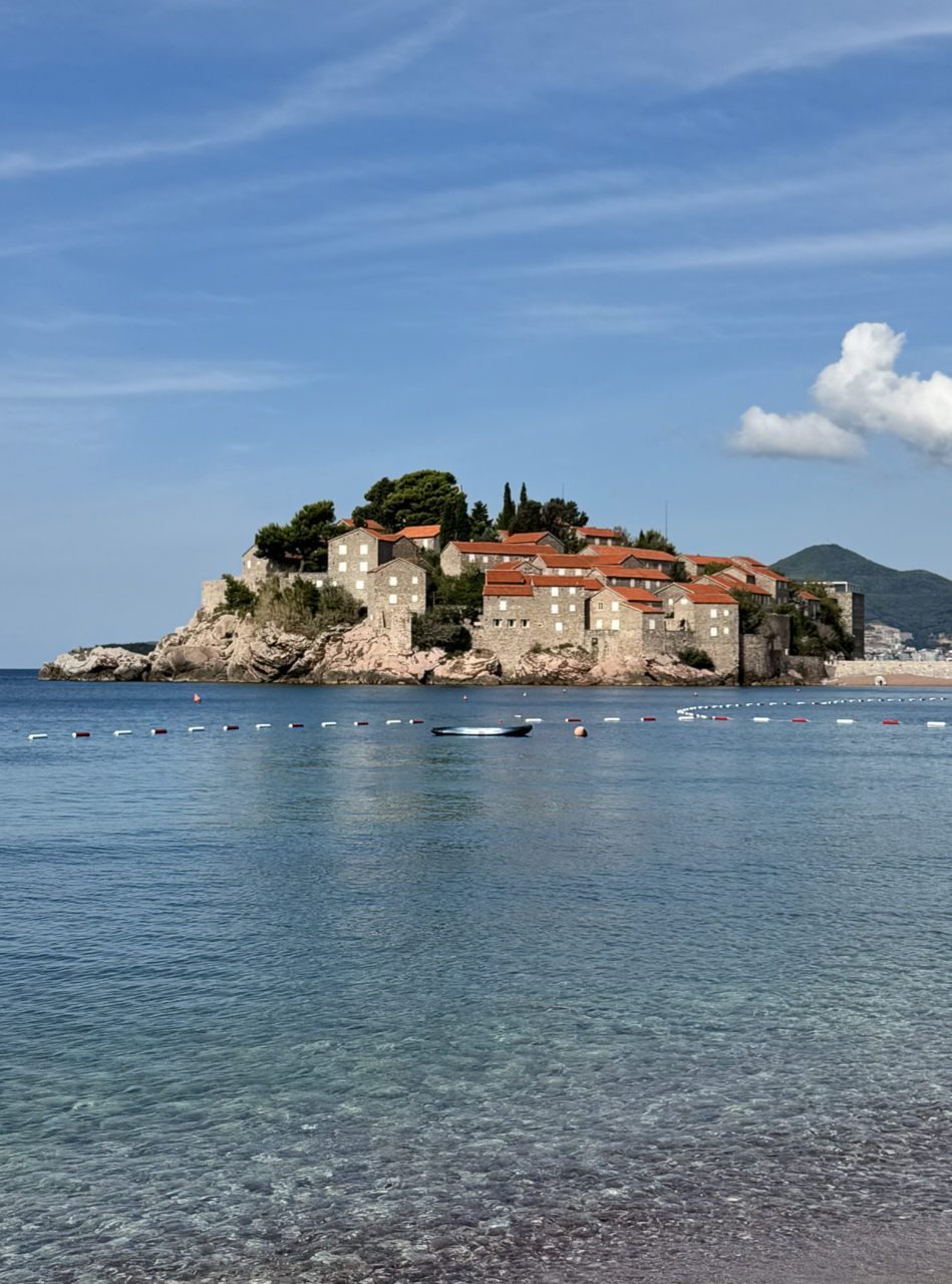 Onwards to a town that’s name we just couldn't stop saying, Sveti Stefan - I mean how sweaty is Stefan anyways? This place is certainly the definition of paradise, a small town that cascades down winding roads to a beach of smooth rocks and absolutely crystal clear water. As you gaze along it you spot its hallmark, the island of Sveti Stefan. Connected to the mainland by a single path the old town is a cluster of red roofs and sea-washed rock all piled onto one another. But if you look a bit closer you start to notice all the windows are boarded up, and actually, the island is totally empty. Walking up to it I can see a gate that's padlocked, and as I approach we realise that gate is the only available entrance... Down a Google rabbit hole I go. It turns out that in 2021 the locals protested against Adriatic Properties and Aman, who own the upscale island resort and a few others, for the privatisation of the coastal areas, which include those around the island and the next bay over, Queens Bay - named so as the palace on its shore was the summer getaway of the former queen of Yugoslavia. These are of course the nicest beaches in the area. Alas the owners felt their guests weren't safe and decided to shutter the island until they were able to keep their sections of beach private. As a result the island, which is called the "pearl of Montenegro" has been out of commission for four years and the surrounding beaches completely free! In the end it went to court in the UK (of all places) with a delivered verdict on whether they need to reopen slated for July 2025... Well I'm not sure where it got to, but today the beaches are stunning, still free and with very few cabanas too. Though the island is inaccessible, I felt extra-happy sitting on that beach knowing the locals stood up to a multinational to claim back their slice of paradise. I joked to an old school friend that the day they privatise the beach in Australia is the day I go to war, and come to think of it, I'm not sure I was joking. Aside from lounging on the beach, Sveti Stefan is the start (or end point) of the seven bay trail, a roughly 14km round trip walk to Budva in the north. The trail winds through secluded bays, plush beach clubs, quaint fishing villages and finally lands in the lovely old town of Budva. We've seen amazing beaches in spades on this trip, and Montenegro is right up there, during the walk I never tired of marvelling at the crystalline waters that line the coast. It felt great to push our bodies a bit harder than we had been, and we both had severe jelly legs the next day!