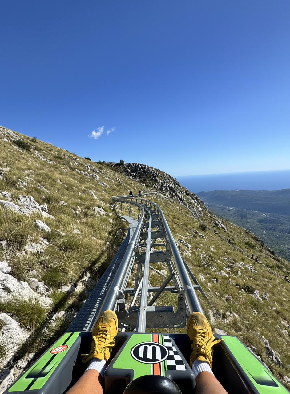 Our next stop was Kotor. This has quickly risen to the top as one of my favourite places. I don’t know what it was about it, our accommodation, the mountainous views, the place itself or the activities that we did. But I would highly recommend Kotor to anyone, this place had it all. We loved it so much we stayed 5 nights. I had seen in my extensive research (TikTok) there was an alpine coaster on one of the mountains nearby so naturally I was very eager. We rode the 20 minute cable car to the top with glorious views overlooking The Bay of Kotor. We were pleasantly surprised that there was more than just the alpine coaster up there, you could do many different hikes, have dinner, shop, there was an awesome playground and of course endless beautiful sunset spots to have a drink and listen to the live DJ. Jesse and I spent over four hours up there. If you don’t want to line up for the ride go earlier and avoid going at sunset, the ride was relatively free at around 4 and then we got to sit back at a beautiful spot with a drink in hand to watch the sunset. For a ride that cost 8 euro it was 100% worth it and Jesse and I found ourselves wanting to go back on it immediately. After riding the cable car back we heard that there was a free concert in the old town by International artist Manu Chao (we had never heard of him) but him and his band sure put on a show. Jesse and I made connections of his band to something you might see at WOMAD, big sound, lively musicians much to the likes of The Cat Empire.