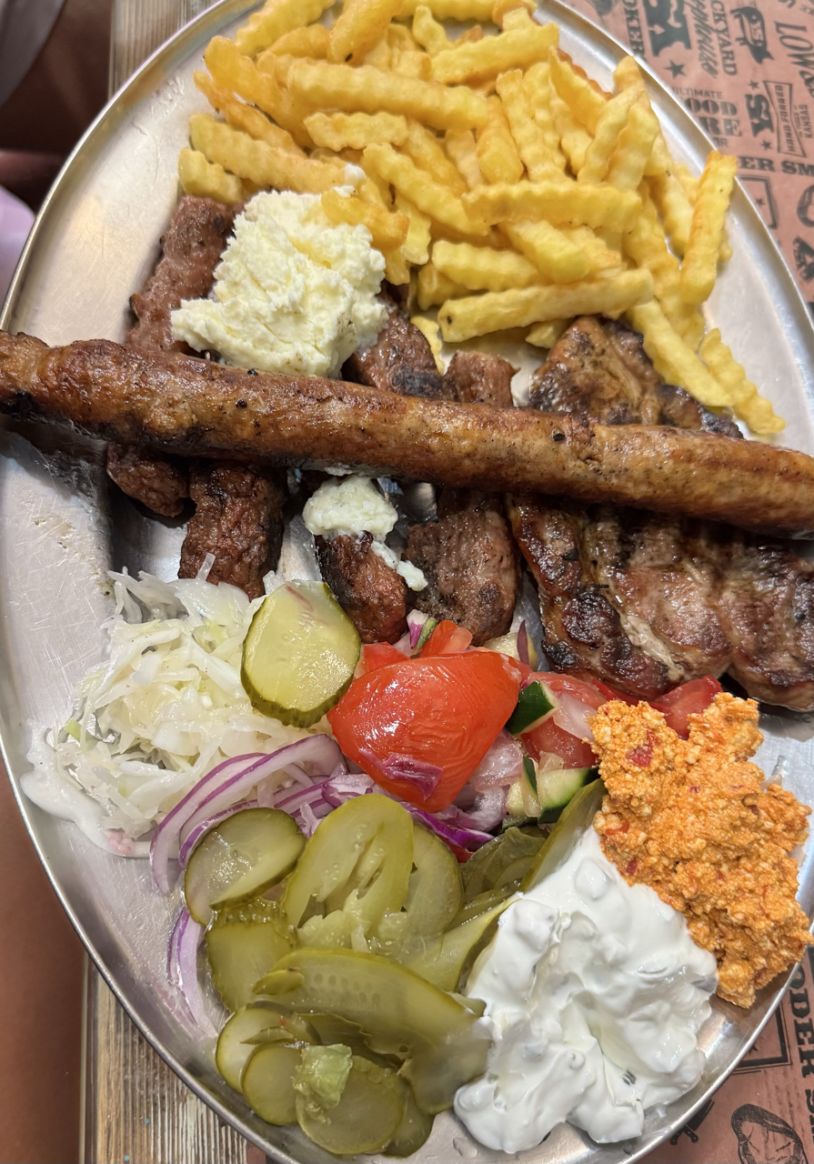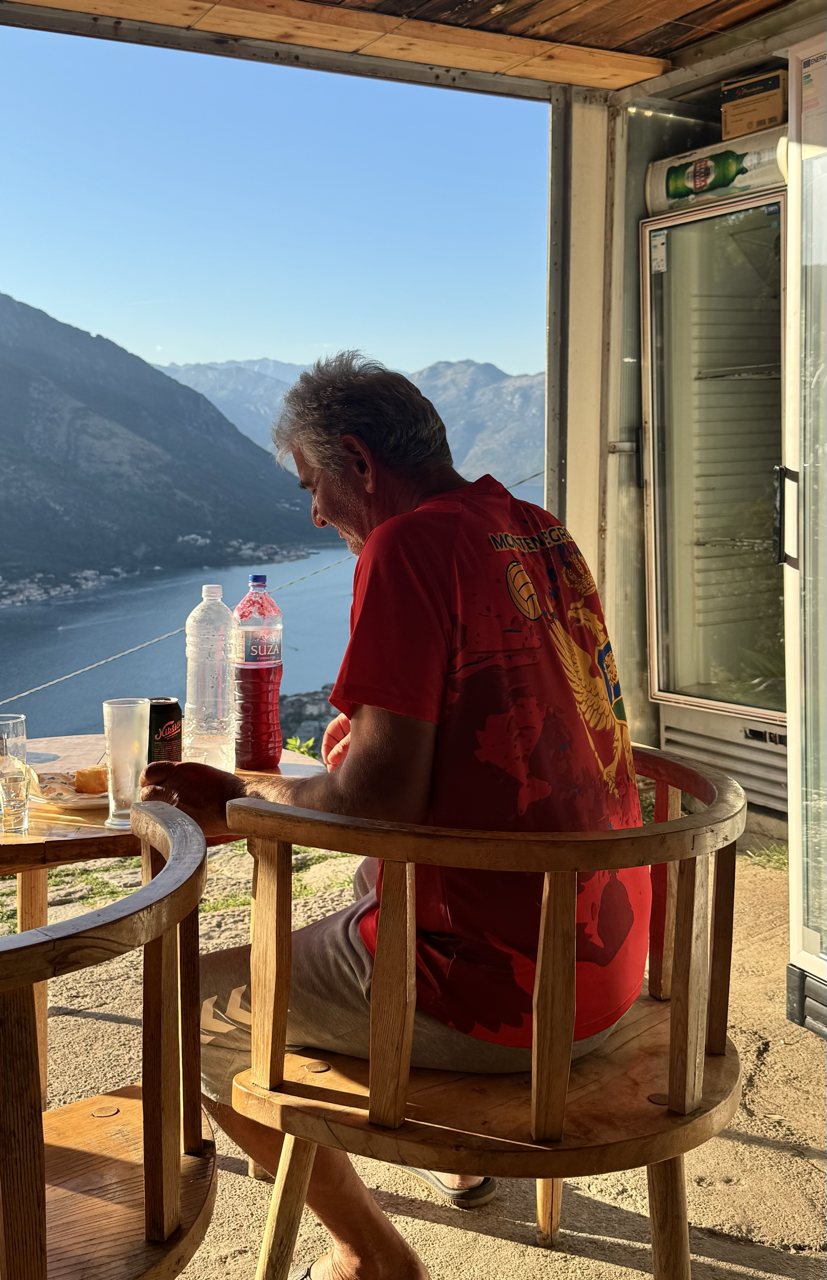 Kotor is our final stop in Montenegro, the town sits on the expansive Bay of Kotor that opens into the Adriatic, and is simply spectacular. The inland bay offers ocean coves against a backdrop of sheer mountains on every side. The bay itself is dotted with fishing and pleasure craft, kayaks and the infamous cruise ships that pull right up to the old town to deposit their cargo of loud, white Americans. During our time here I became obsessed with an app called Vessel Finder which shows you in real time all the boats near you and their specs - extra juicy if you spot a boat like The Black Pearl, like we did - owned by a Russian oligarch of course. Amidst the bay are other gems, such as the man-made island Our Lady of the Rocks, that was created by sinking over 127 ships in order to erect a cathedral, in fact each June the locals all paddle out and throw stones in the water to continue growing the island, there's also abandoned submarine tunnels from the days of Yugoslavia that you can drive right into. We stay across the bay in Muo where the patio offers views that are impossible to tire of, five nights here could never be enough. Days are slow to get moving and stretch long into the night, the perfect balance if you ask me. Believe it or not, one of the highlights of Kotor for me is Tanjga Chophouse, or in simpler terms, the ultimate corner chicken shop. We ate here more times than I care to admit, and frankly it wasn't enough. It's basically meat and sides, but all the myriad meats are cooked on coals and served with piles of delicious pickley salads, fresh bread, golden chips, and don't forget the dollop of clarified butter - health food! I could dedicate this entire blog to this place, but I digress.
